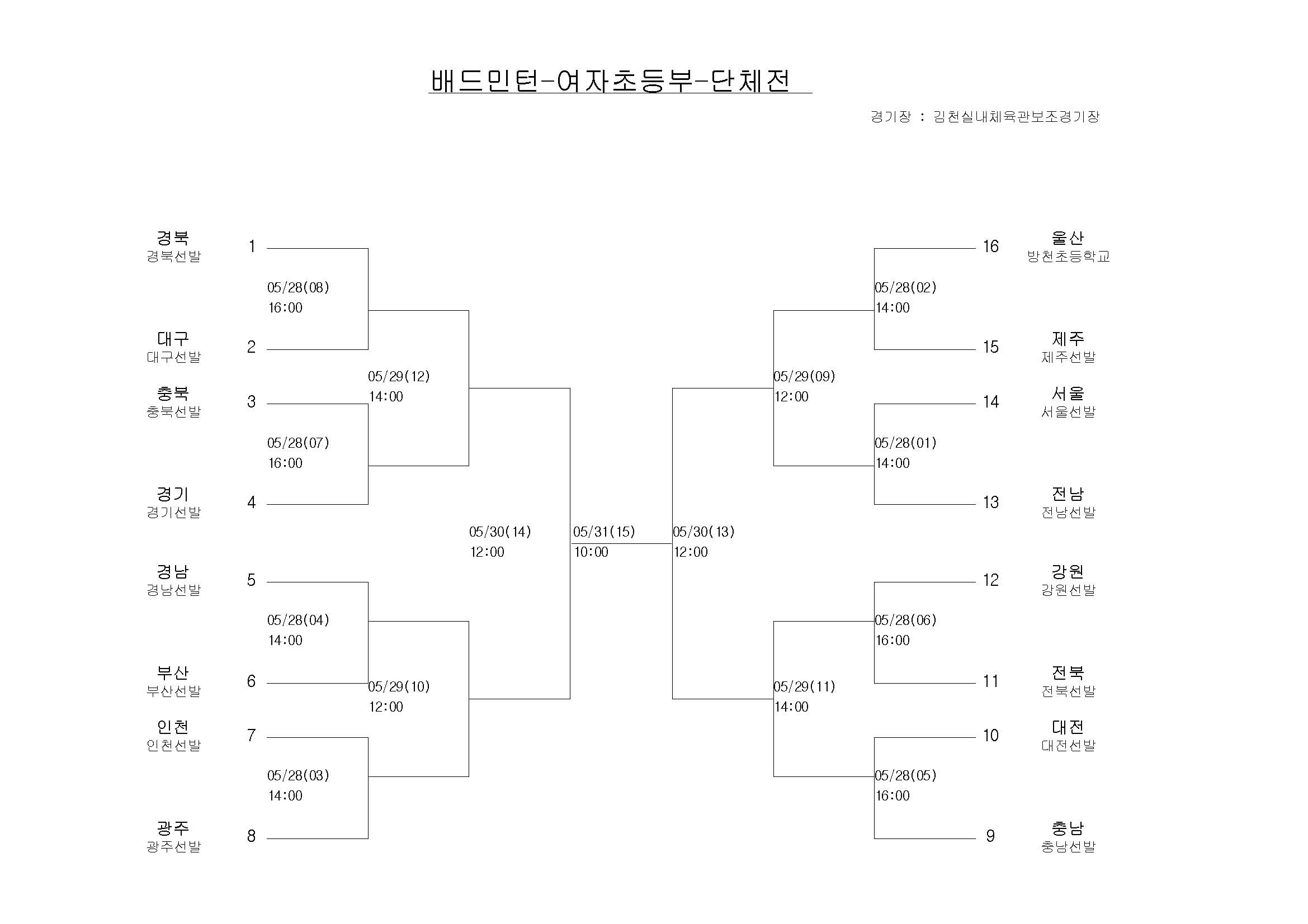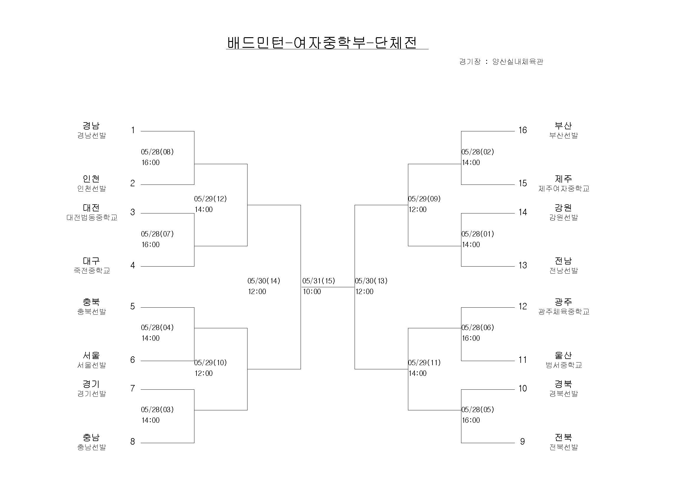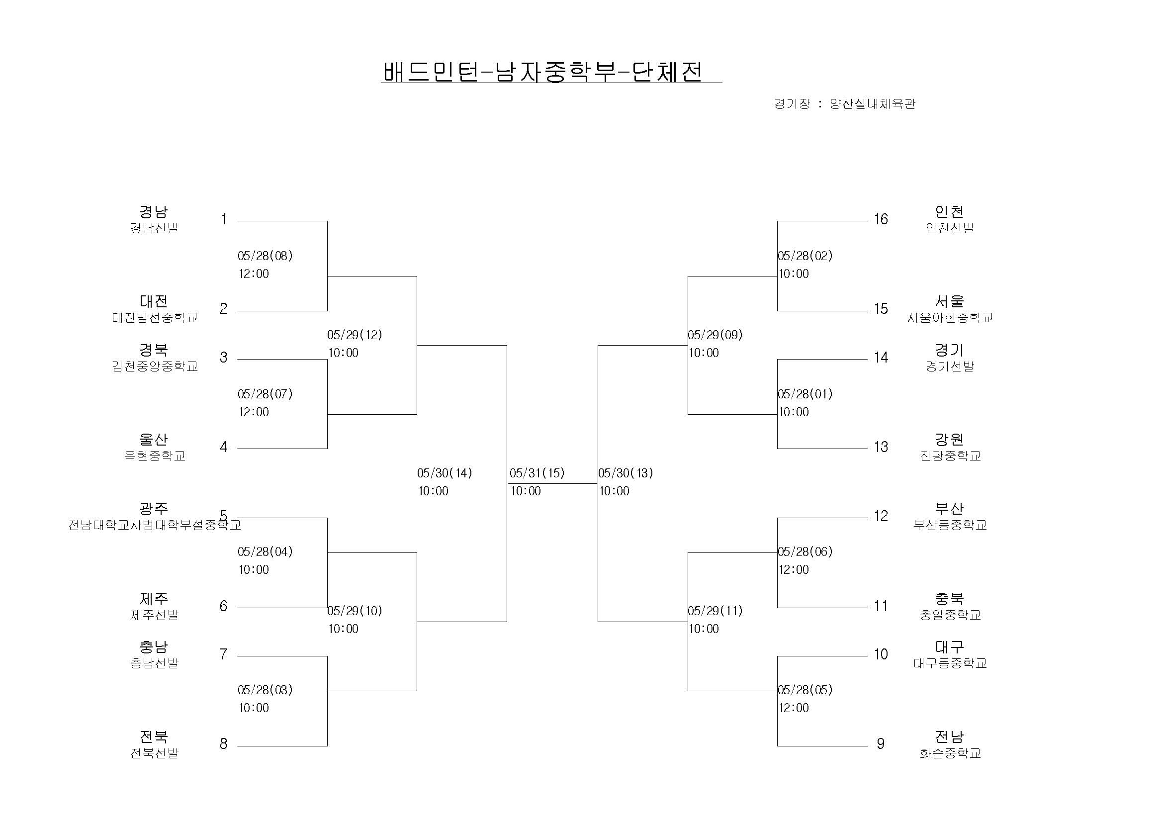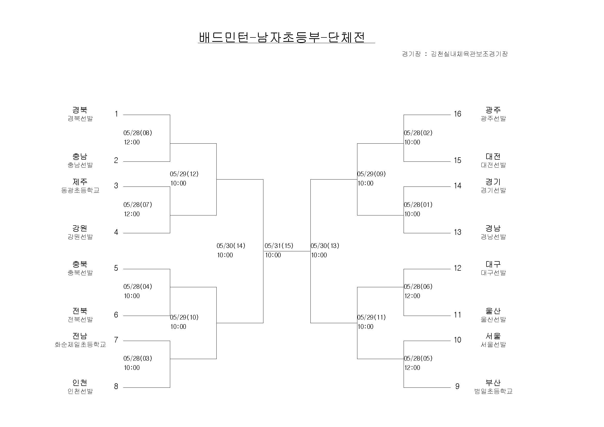 news 전국소년체육대회(5/28~31) 배드민턴 대진표 확정