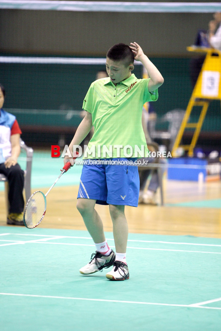 남자초등부 4강전 경기에서 박희영(대전, 매봉초)이 실수한 뒤 아쉬운 표정을 짓고 있다.