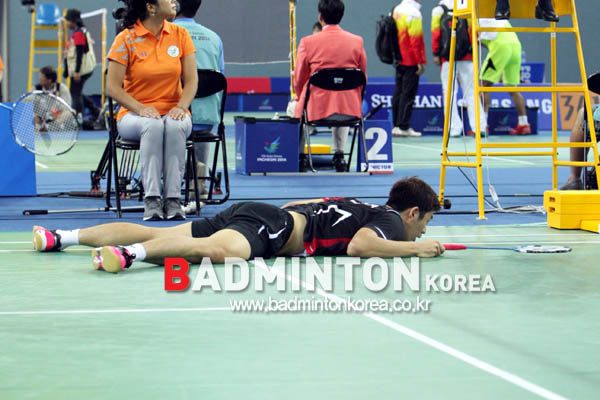 photo 이용대 '몸을 날려 봤지만'