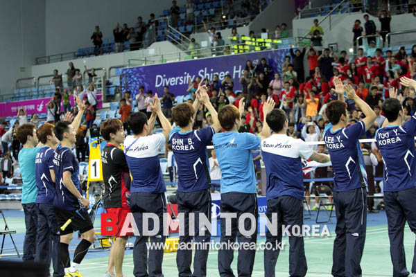 23일 남자단체 결승전이 열렸다. 한국이 중국을 3-2로 꺾고 2002부산아시안게임 이후 12년 만에 남자단체전 금메달을 획득했다.