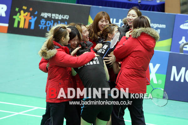 여자복식 엄혜원-이장미(MG새마을금고)의 승리로 MG새마을금고가 여자부 우승을 차지했다.