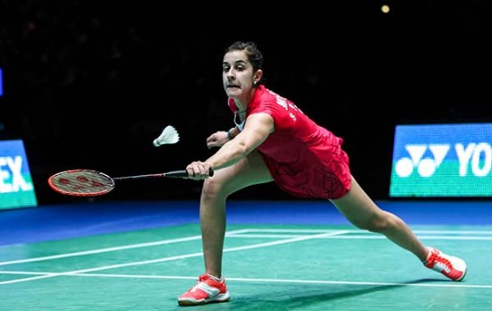 수비에 집중하는 여자단식 우승자 캐롤리나 마린(스페인 세계랭킹 2위)