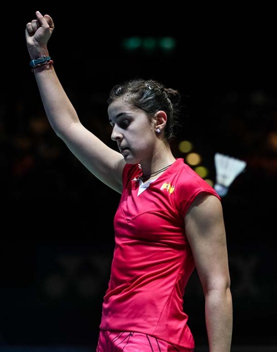 세리모니하는 여자단식 우승자 캐롤리나 마린(스페인 세계랭킹 2위)