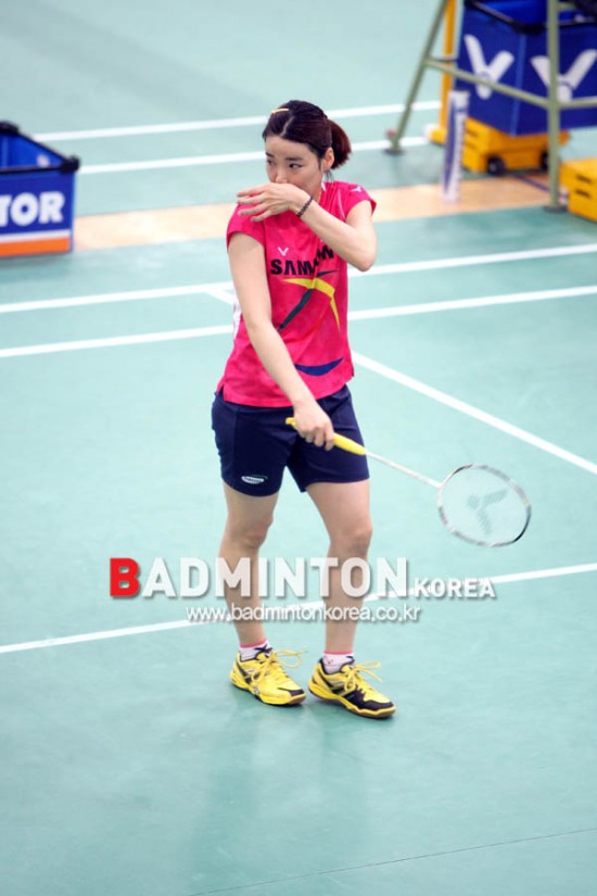 박소리(삼성전기)가 여자복식 경기를 치르고 있다.