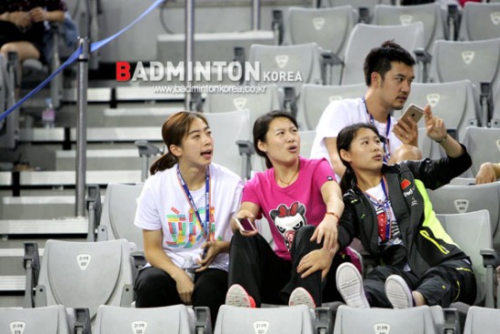 경기장에 응원 온 왕스시앤, 루오잉-루오유 자매.