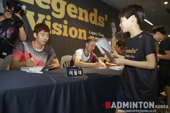 [배드민턴코리아] 'YONEX THE LEGEND’S VISION LEGACY TOUR(레전드 비전 레가시 투어, 이하 레전드 비전)'가 지난 6월 24일 경기 고양시 고양체육관에서 열렸다. 이번 레전드 비전은 한국에서 처음 열리는 레전드 비전으로 로컬 레전드인 김동문 원광대 교수, 하태권 요넥스 감독이 이용대, 그리고 이번 행사를 위해 방한한 피터 게이드 프랑스 대표팀 감독과 함께 했다.